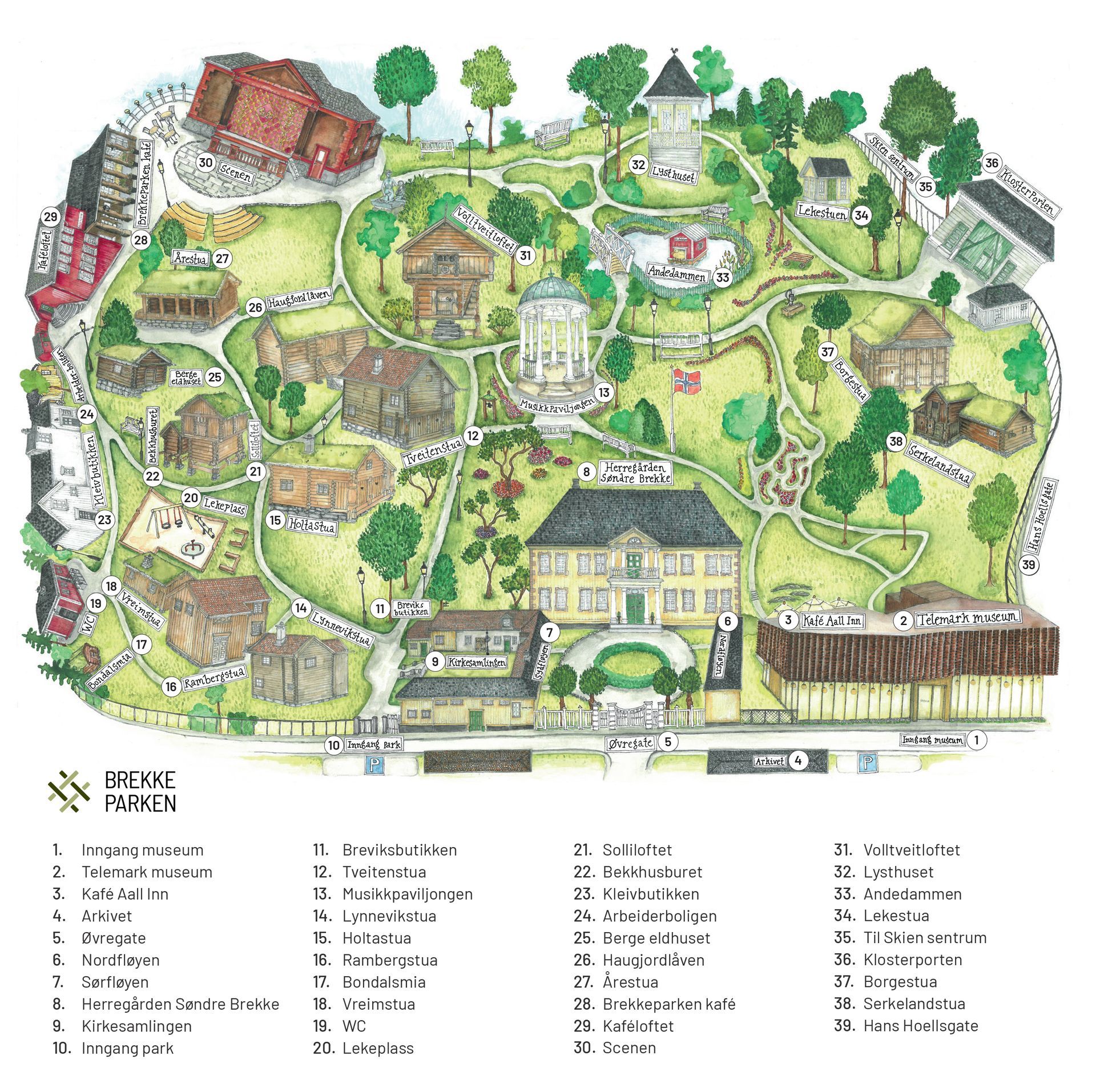 Brekkeparken kart er et orienteringskart som viser Brekkeparken og bygningene for de besøkende. Kartet er montert ute i parken, men det finnes også på papir hvis man besøker museet.